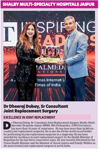 Dr. Dheeraj Dubay made history by performing 34 joint replacement surgeries and 1 hip replacement surgery in a single day, earning a spot in the Forbes World Record, IBR and Golden Book of World Records.
