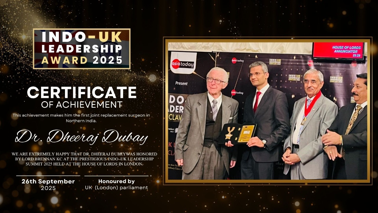 Dr. Dheeraj Dubay received a prestigious recognition from the United Kingdom for outstanding contributions in the field of Joint Replacement Surgery, reflecting his dedication to excellence and innovation in orthopaedic care.